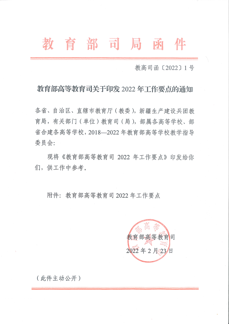 教育部高等教育司 2022 年工作要点