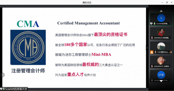 本网讯 为帮助同学们了解专业动态,并根据专业特点做好个人职业发展规划,2021年2月6日,财经系开展了CMA管理会计线上直播分享会。