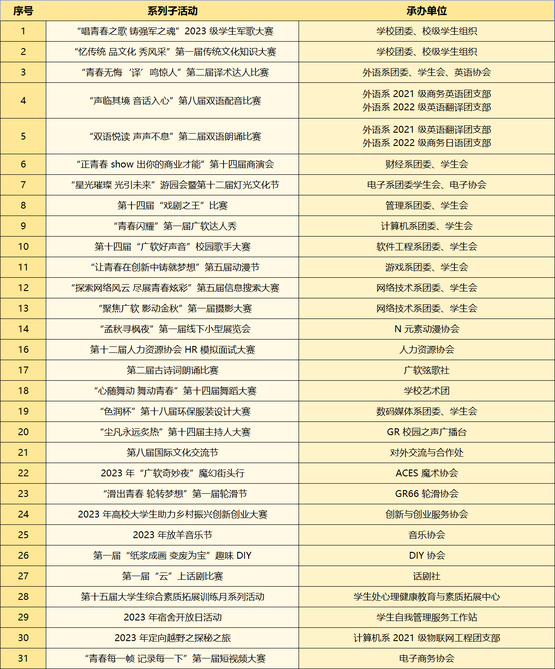本网讯 10月17日,学校在明德广场举办“缤纷艺术 青春广软”广州软件学院第十四届校园文化艺术节暨第二届社团嘉年华开幕式。学校党委副书记兼纪委书记张广金、各相关职能部门负责人、各系党总支书记、团学指导老师、校团委全体教师、学生代表、社团代表莅临现场,共赴这场秋日邀约。