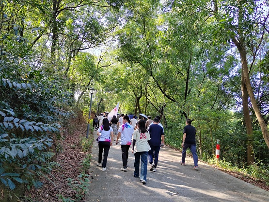 本网讯 10月24日下午,广州软件学院工会举办一年一度的教职工登“马仔山”活动。学校党委书记兼工会主席刘友坤、党委副书记兼工会副主席张广金、副董事长助理叶倩如、工会副主席王婧、各机关及系部教职工参加登山活动。