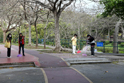 师生为草坪浇水
