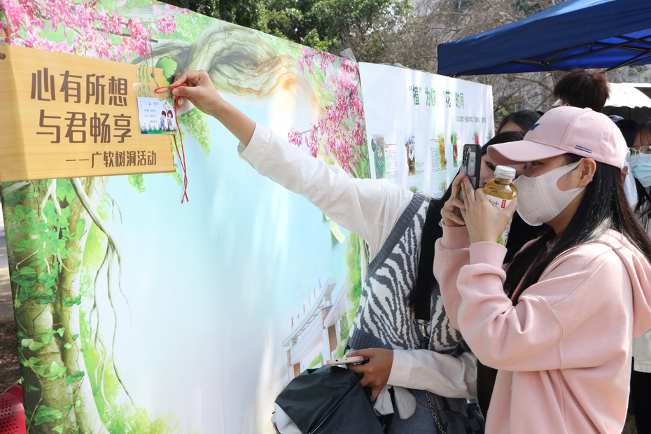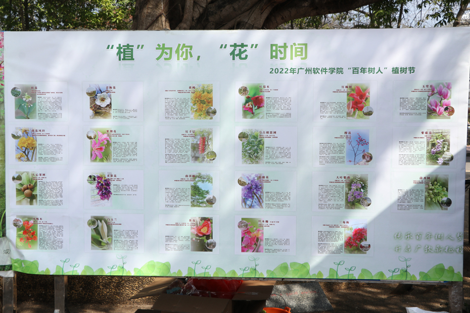 “植”为你,“花”时间展板,展出校园种植花木的分布信息,寄情于树木,融情于广软。