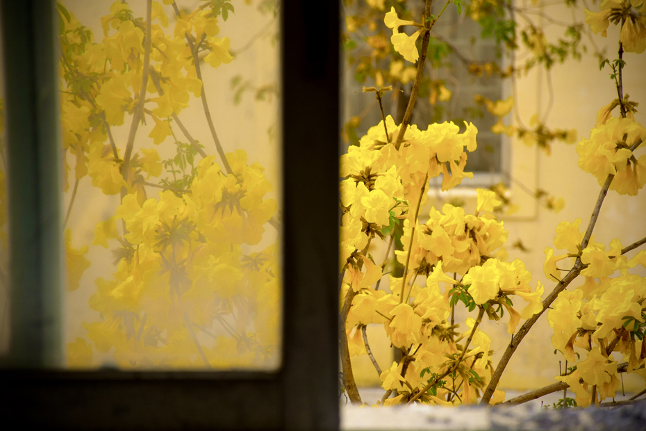 喇叭状的黄花铃木缀满枝桠(摄影 李珮琳)