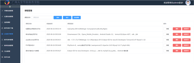 ③ 综合管理模块,功能:基于Web的综合管理平台,帮助教师轻松管理实验教学。管理平台通过代码相似度检查分析是否存在抄袭情况。学生通过管理平台上传代码、文档和应用程序,方便教师集中管理。学生作品上传管理平台后,还可在网页上直接运行。