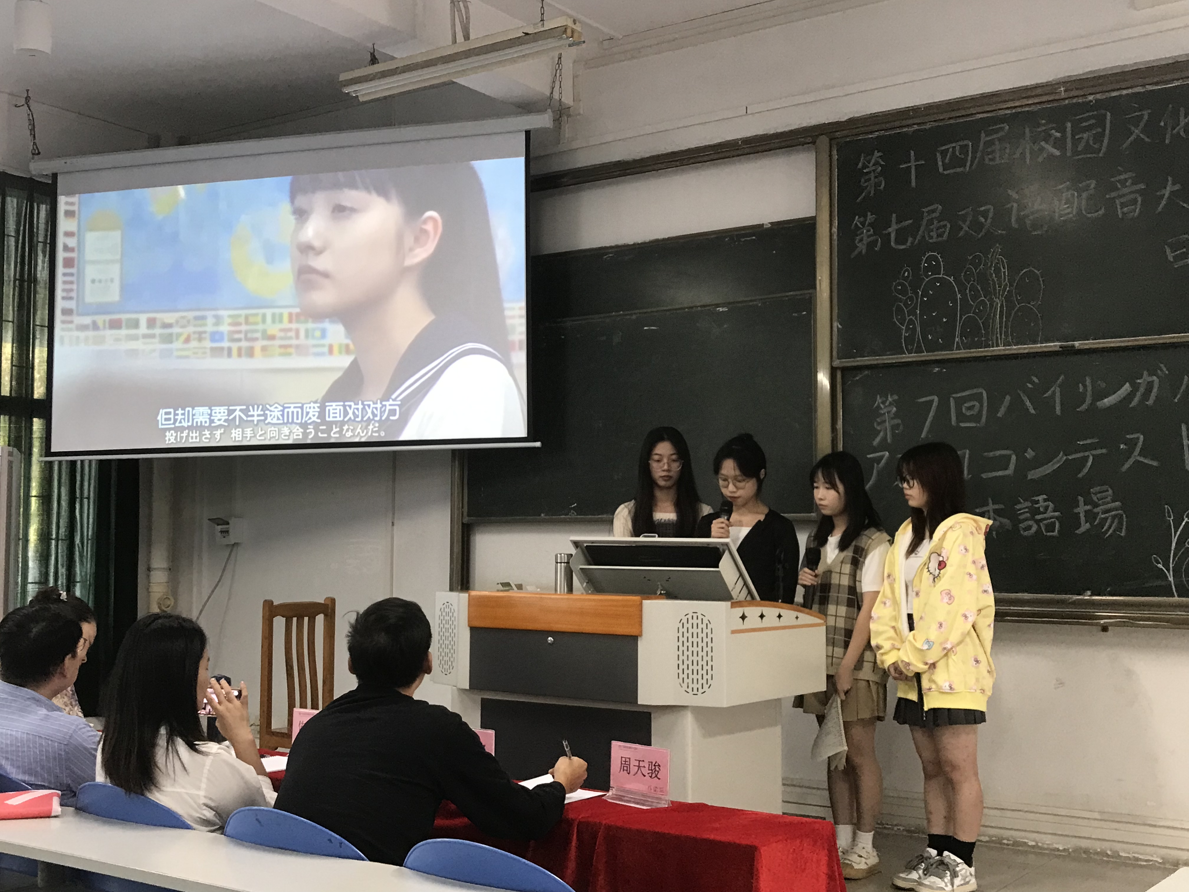 通过初赛的激烈角逐,日语组共有五组选手入围决赛,她们运用扎实的日语功底和丰富饱满的情感为现场观众献上了一段段精彩绝伦的配音,现场氛围热烈。