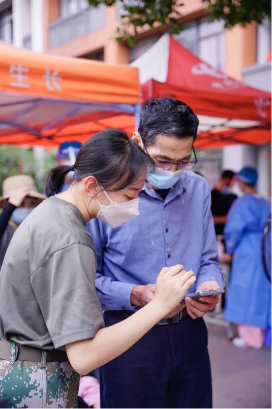 在参加工作的过程中,她需要随时上传下达,在老师和同学之间做好沟通的桥梁。她参加过学校核酸检测的布场、撤场、测温、秩序维护等工作,努力将自己和队伍负责的环节做到衔接无误,保证校园防疫工作的顺利进行,在任期间共参加过与疫情防控相关大小志愿活动30余次。在2022年度五四表彰大会上被评为“校防控优秀工作者”。