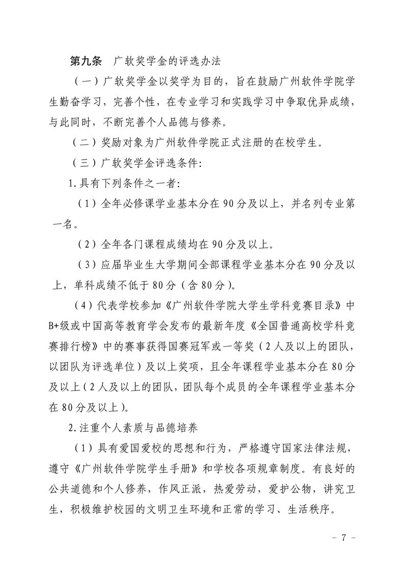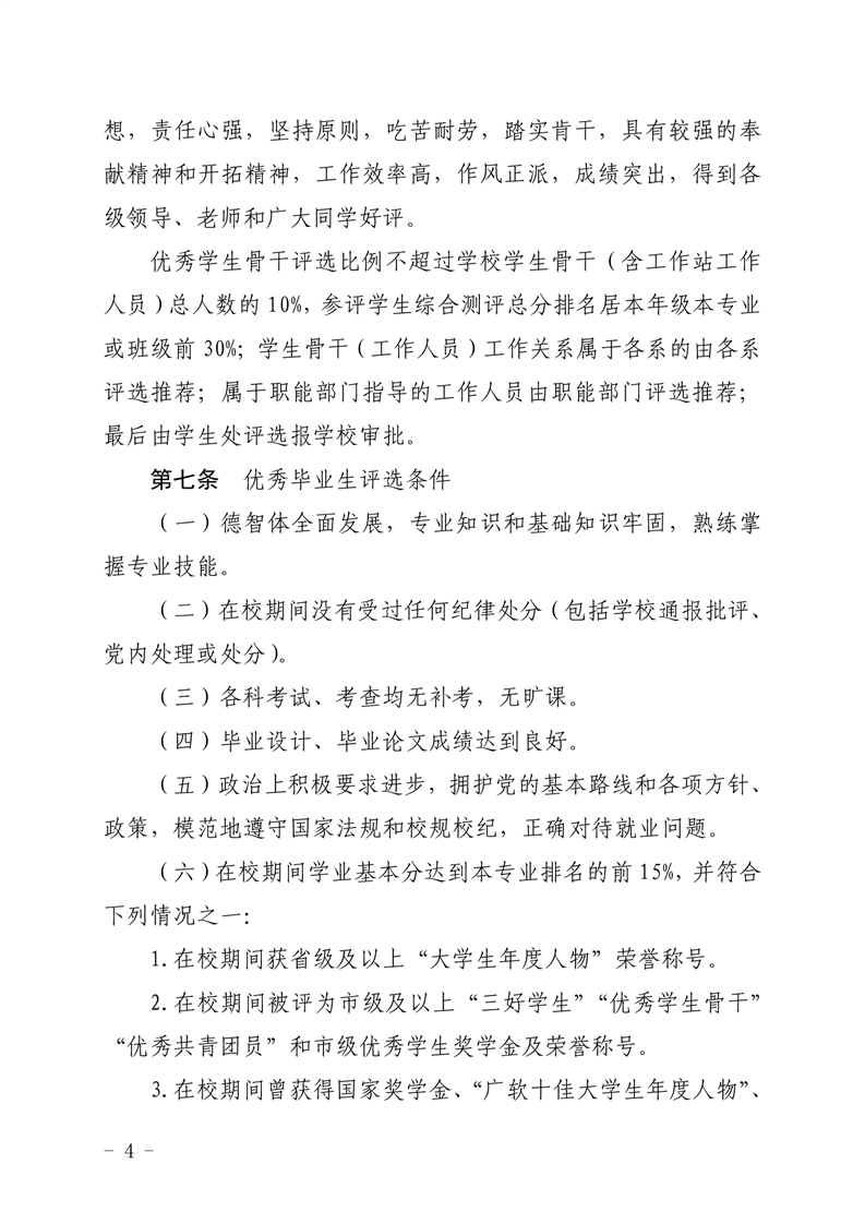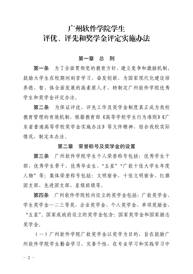 广州软件学院学生评优、评先和奖学金评定实施办法