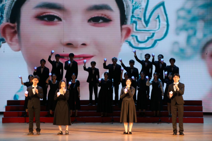 由学校团委选送,学校基础部的配合下,学校合唱队的同学们给全场观众带来了合唱表演《这世界那么多人》。这次表演不仅展现了学校的艺术氛围和文化底蕴,也展示了学子们的才华和团结合作精神。他们用歌声诠释了青春的力量,让人们深刻感受到美育的魅力和教育的力量。
