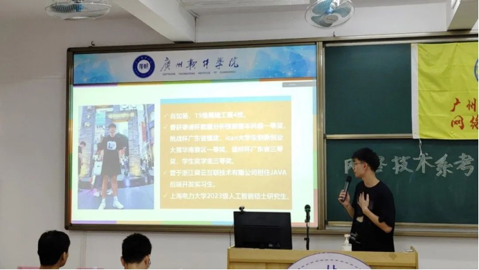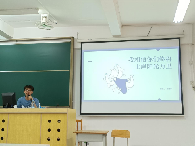 肖如旸同学分享考研经验。肖如旸师兄指出,在确定考研后需要规划好大学生活,专注于学习和竞赛,丰富自身履历;结合实际情况选择适合自己的高校;放平心态享受过程。